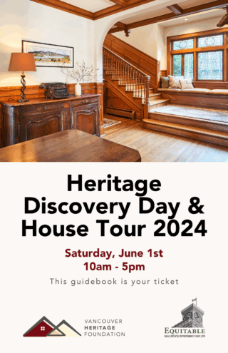 Do you or someone you know live in a house that may be a good fit for a future tour? We are always searching for great examples of heritage or character homes to open on our tours. If you’d like to know more, or have your home considered for inclusion on a future tour, contact us 604 264 9642 or by email.