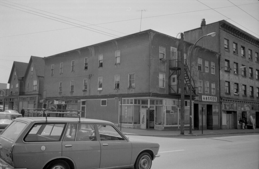 Photo Caption: Gore Avenue and Powell Street intersection – Jung’s Café c. 1972-73(Credit City of Vancouver Archives 1095-09896)